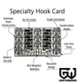 Grim's Specialty Hook Card, is a credit card sized pocket fishing kit, with a plethora of different hooks. Though they can be used as-is, they were specially designed to fit onto our lure card lures hassle-free with no knots needed due to our in-house designed hook attachment system utilized on this fishing survival card. This card comes with not only dozens of hooks but also several micro weights/lures to help weight down your hooks and add some flash and additional movement to them.