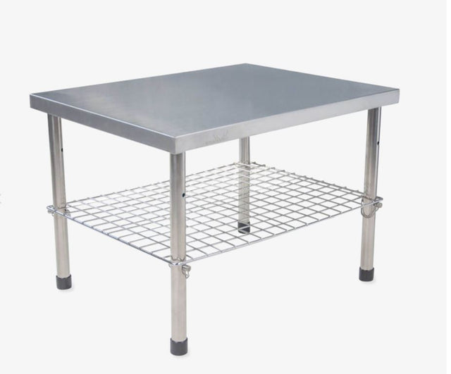 Solid stainless steel tabletop is suitable for Dutch Oven cooking.