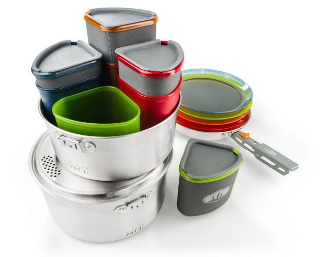 The pots’ stainless is really durable, heats efficiently, and washes up easily, and the strong, durable plates and mugs are built to handle camping’s realities like kids, rocks and gravity.